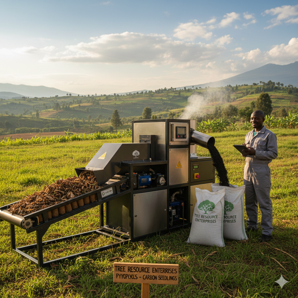 Using sustainable pyrolysis technology, we convert collected biomass into biochar. This process captures carbon that would otherwise be released, locking it into a stable form for centuries.